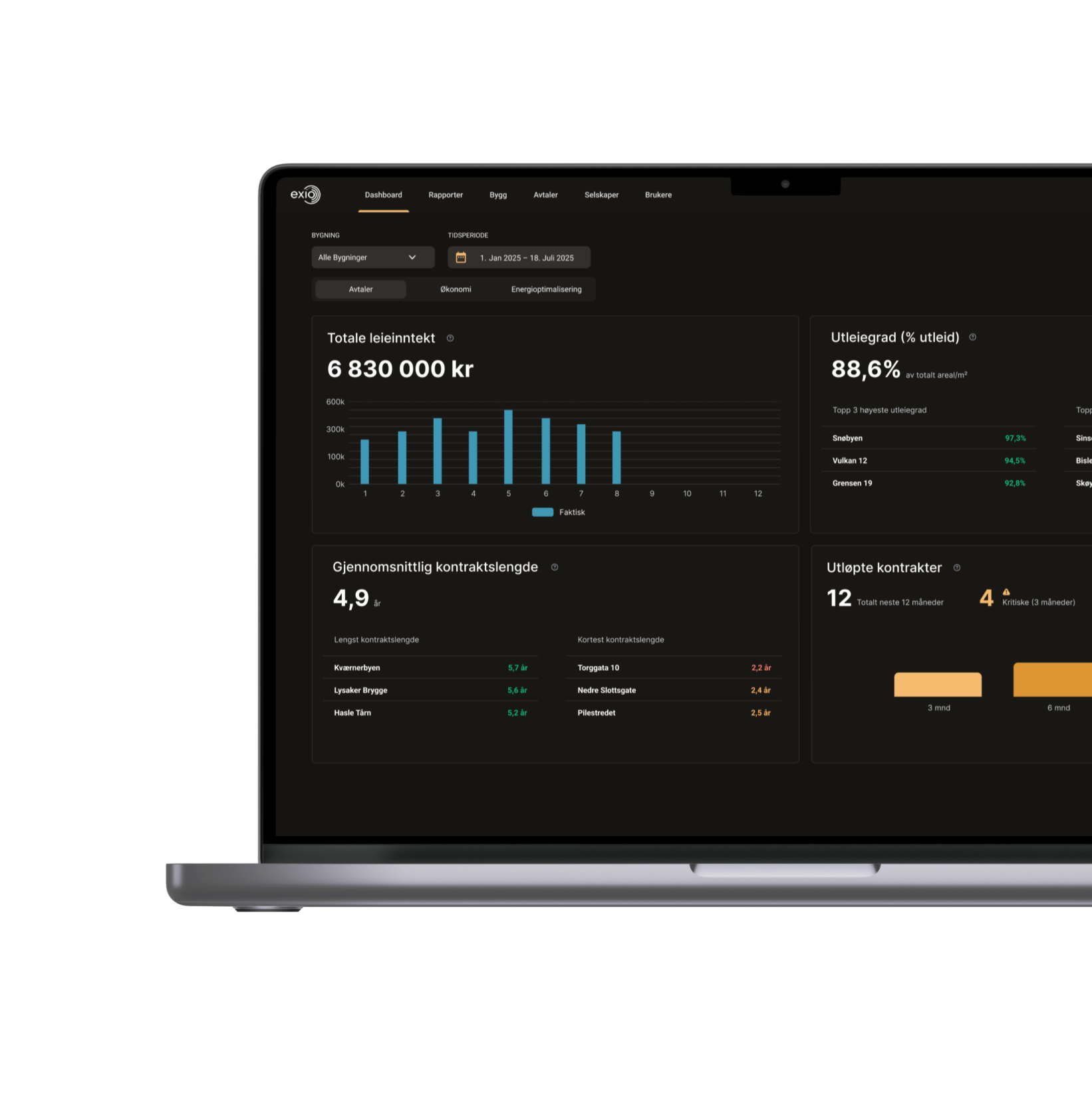 3) Sanntid - Ett dashboard for hele eiendomsporteføljen. Varsler når kostnader og kontrakter ikke stemmer.